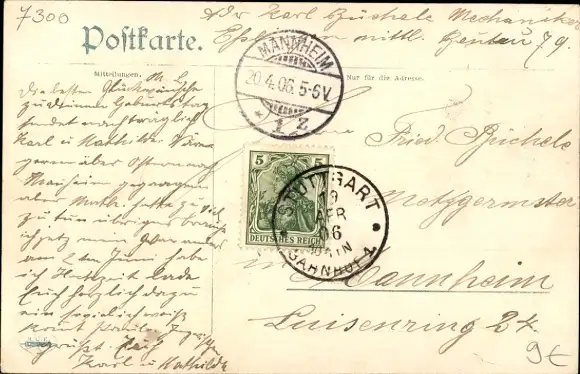 Zustand, siehe Scan, gelaufen, 1906 - ca 14 cm X 9 cm