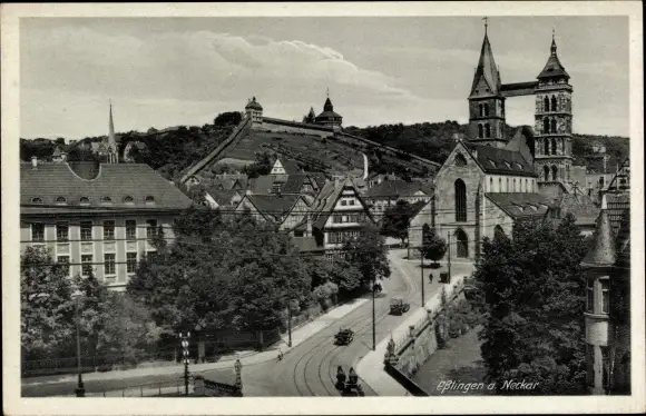 Ak Esslingen am Neckar, Teilansicht mit Kirche