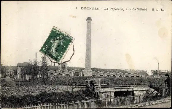 Ak Essonnes Essonne, La Papeterie ,vue de Villabé, cheminée