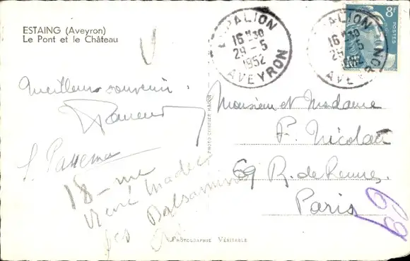 Zustand, siehe Scan, gelaufen, 1952 - ca 14 cm X 9 cm