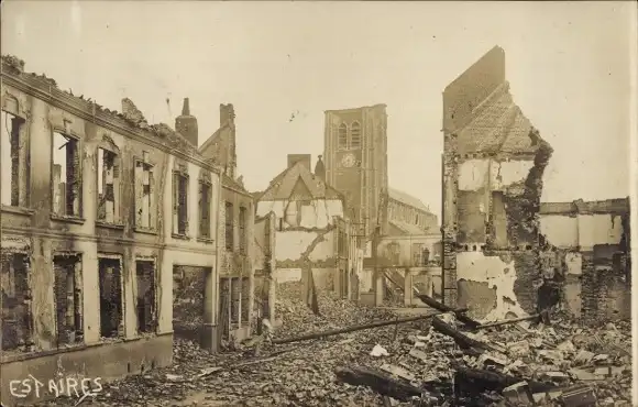 Ak Estaires Nord, Zerstörte Häuser, I. WK
