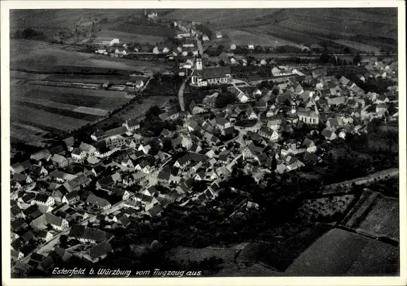 Ak Estenfeld in Unterfranken, Luftaufnahme, Estenfeld, Häuser, Kirche