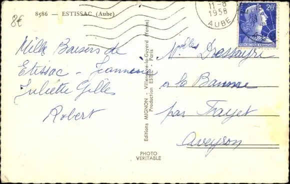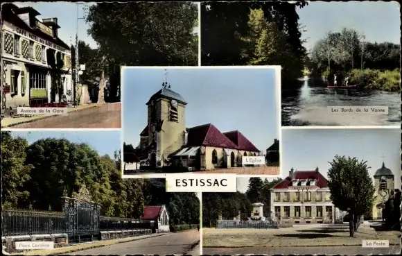Ak Estissac Aube, Avenue de la Gare, Place Caroline, Postamt