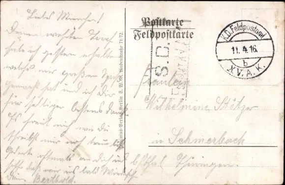Zustand, siehe Scan, gelaufen, 1916 - ca 14 cm X 9 cm