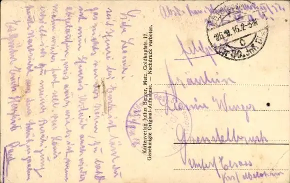 Zustand, siehe Scan, gelaufen, 1916 - ca 3 cm X 5 cm