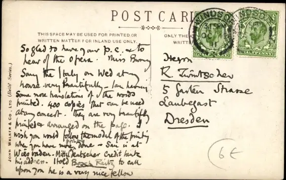 Zustand, siehe Scan, gelaufen, 1911 - ca 14 cm X 9 cm