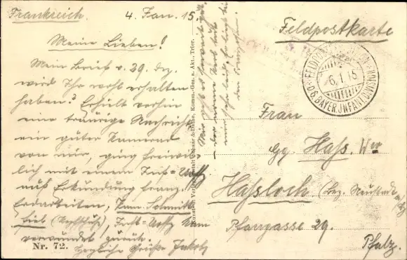 Zustand, siehe Scan, gelaufen, 1915 - ca 14 cm X 9 cm