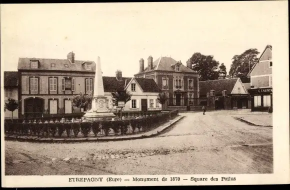 Ak Etrépagny Eure, Monument de 1870, Square des Poilus