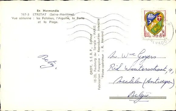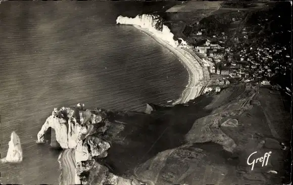 Ak Étretat Seine Maritime, Luftbild, Klippen, Aiguille, Strand