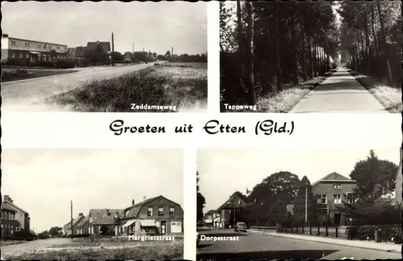 Ak Etten Gelderland, Zeddamseweg, Tappeweg, Margrietstraat, Dorpsstraat