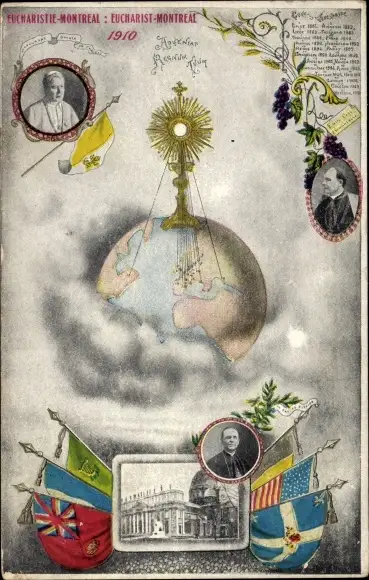 Ak Eucharistie Montreal, Geistliche, Erde, Religion, Fahnen