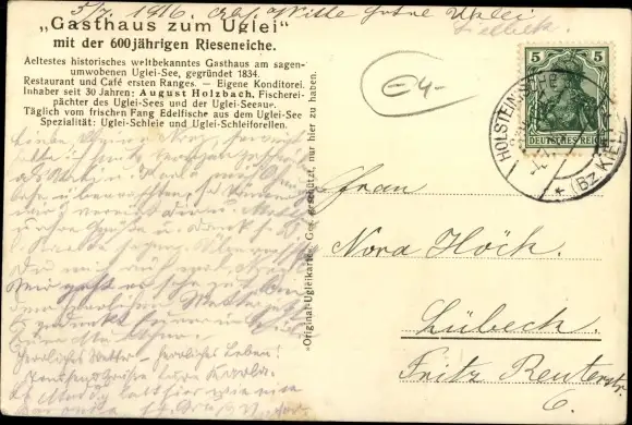gelaufen 1916, fleckig, sonst guter Zustand - Inh.: August Holzbach