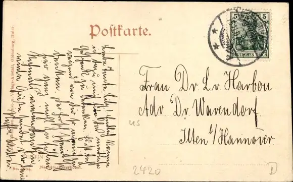 Zustand, siehe Scan, gelaufen, 1907 - ca 14 cm X 9 cm