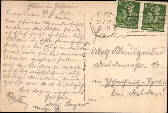 Zustand, siehe Scan, gelaufen, 1922 - ca 14 cm X 9 cm