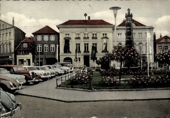 Ak Eutin in Ostholstein, Markt mit Rathaus, Denkmal