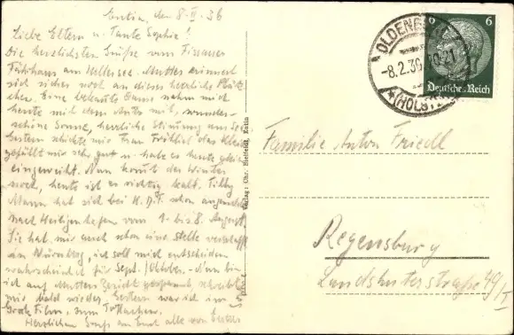 Zustand, siehe Scan, gelaufen, 1936 - ca 14 cm X 9 cm