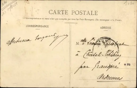 gelaufen 1909, Eckknick rechts unten, sonst guter Zustand