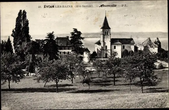 Ak Évian les Bains Haute Savoie, Neuvecelle, Teilansicht mit Kirche