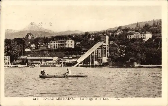 Ak Évian les Bains Haute Savoie, See, Strand, Boot