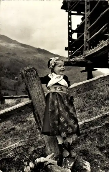 Ak Evolène Kanton Wallis, Mädchen in Schweizer Volkstracht