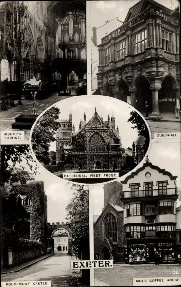 Ak Exeter England, Bishops Throne, Guildhall, Rougemont Castle, Mol's Coffee House
