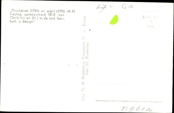 Ak Ezinge Groningen, Ned. Herv. Kerk, Orgel
