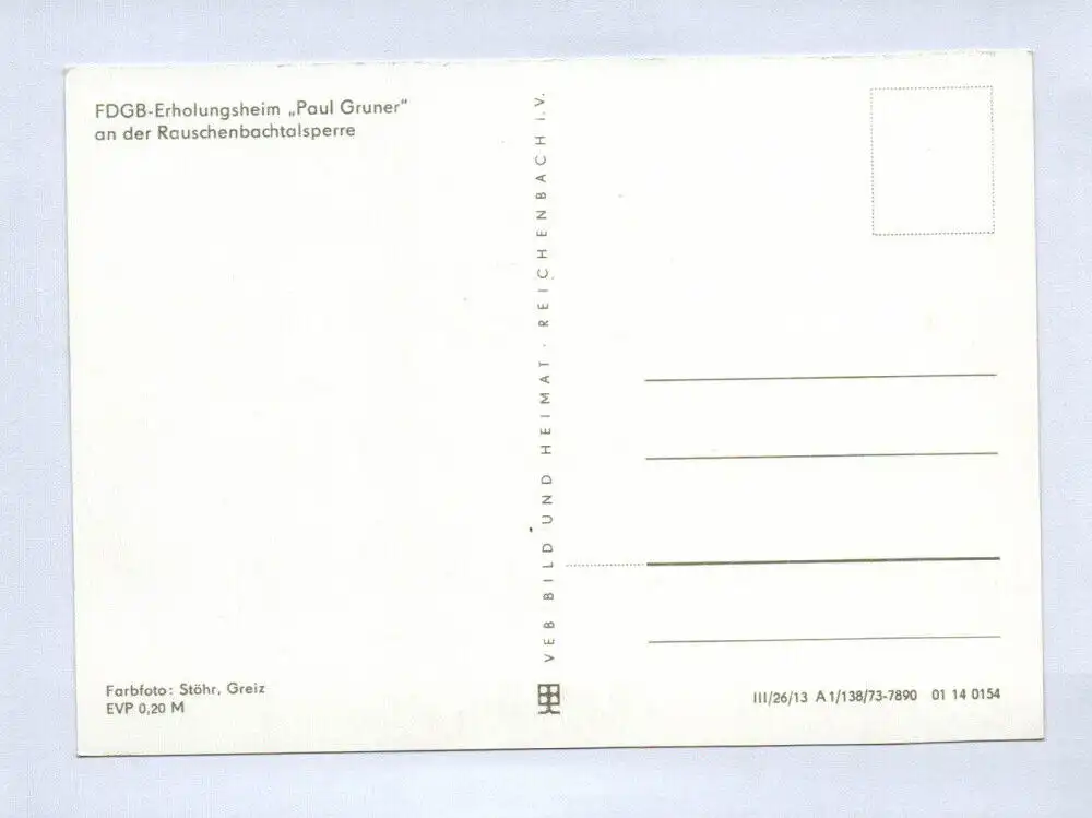 Ak FDGB Ferienheim Paul Gruner an der Rauschenbachtalsperre 1973