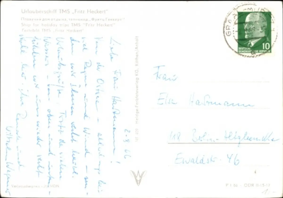 Ak FDGB Urlauberschiff TMS Fritz Heckert
