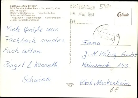 Ak Fachbach in Rheinland Pfalz, Gasthaus zum Engel