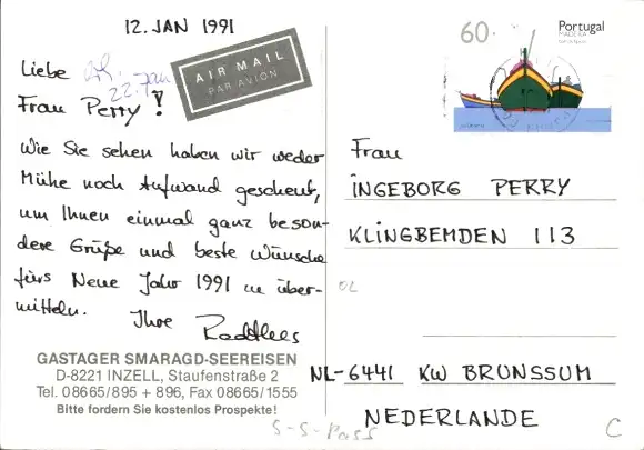 Zustand, siehe Scan, gelaufen, 1991 - ca 15 cm X 11 cm