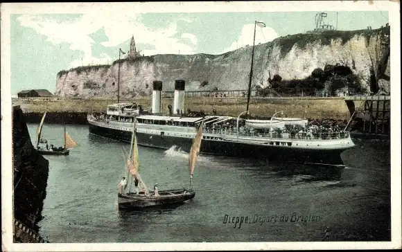 Ak Fährschiff Brighton, Hafenausfahrt Dieppe