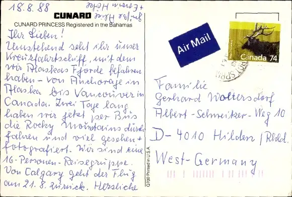 Zustand, siehe Scan, gelaufen, 1988 - ca 15 cm X 10 cm