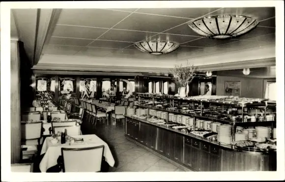 Ak Fährschiff Deutschland, Blick in Speisesaal, Kaltes Buffet, Innenansicht