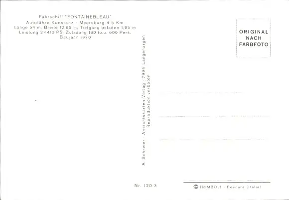 Ak Fährschiff Fontainebleau auf dem Bodensee, Autofähre Konstanz-Meersburg