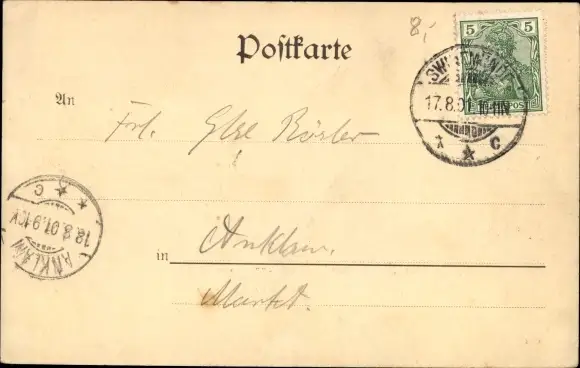 Zustand, siehe Scan, gelaufen, 1901 - ca 14 cm X 9 cm
