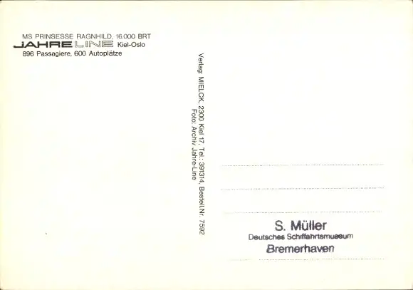 Ak Fährschiff MS Prinsesse Ragnhild, Jahre Line