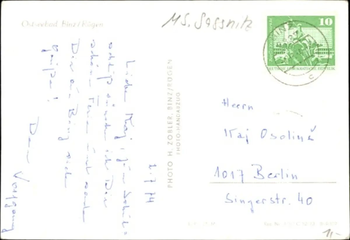 Zustand, siehe Scan, gelaufen, 1974 - ca 15 cm X 11 cm