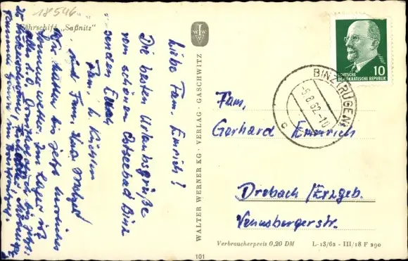Zustand, siehe Scan, gelaufen, 1962 - ca 14 cm X 9 cm