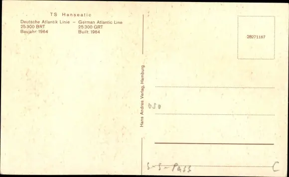 Ak Fährschiff TS Hanseatic, Deutsche Atlantik Line