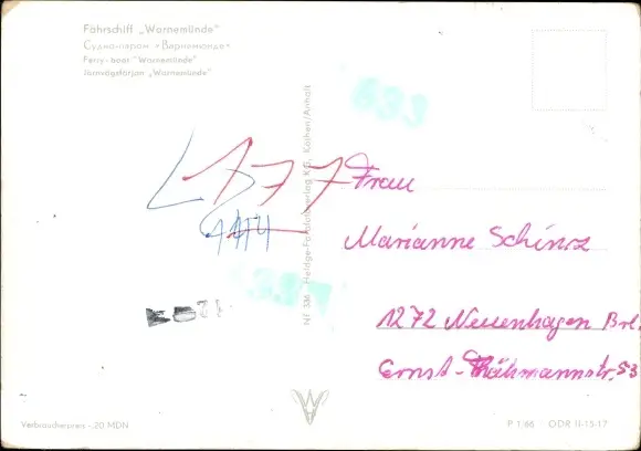 Ak Fährschiff Warnemünde