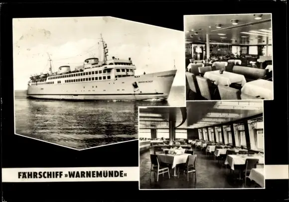 Ak Fährschiff Warnemünde, Dampfschiff, Speisesaal, Tagesraum