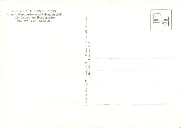 Ak Fährschiff der Deutschen Bundesbahn Theodor Heuss