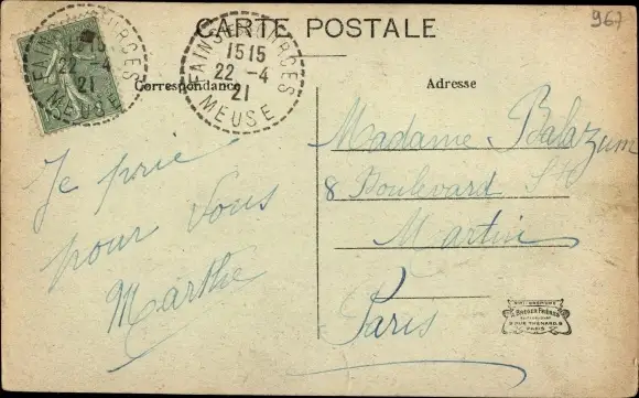 gelaufen 1921, Eckknick links oben, sonst guter Zustand