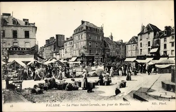 Ak Falaise Calvados, La Place Saint Gervais un jour de marche