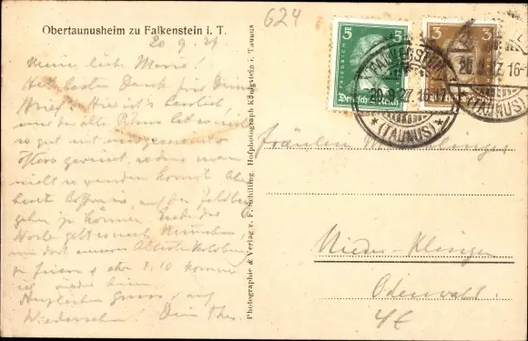 Zustand, siehe Scan, gelaufen, 1927 - ca 14 cm X 9 cm