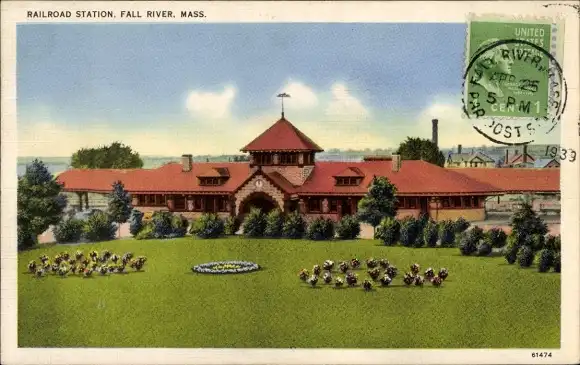 Ak Fall River Massachusetts USA, Bahnhof, Mass.