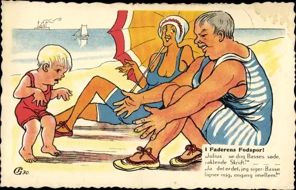 Ak Familie am Strand, Kind, Eltern, Bademode, Badeanzug