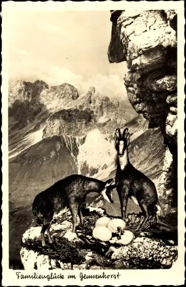 Ak Familienglück im Gemsenhorst, Gemsen, Eier im Nest