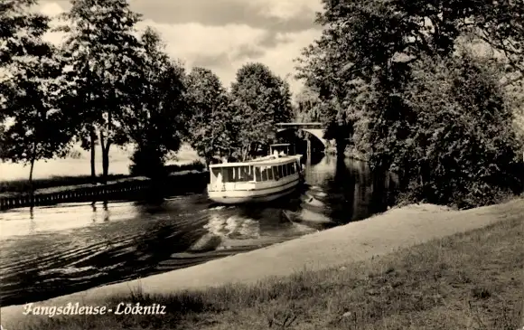 Ak Fangschleuse Grünheide in der Mark, Boot auf der Löcknitz