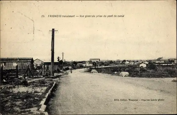 Ak Fargniers Aisne, Vue generale prise du pont du canal